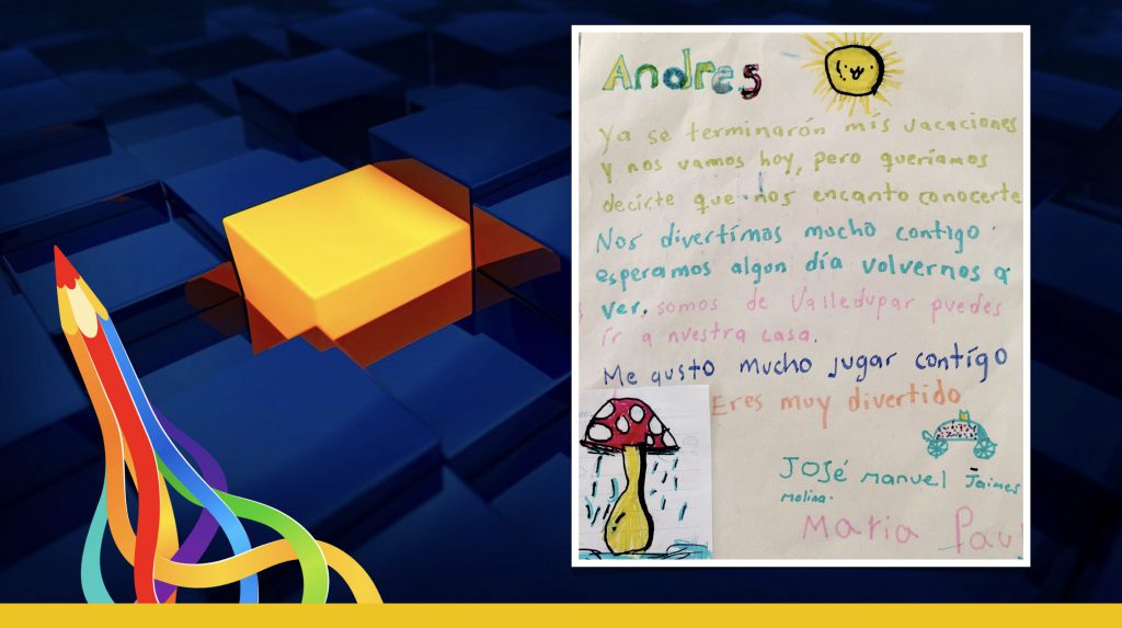 El mensaje, cálido y emotivo, fue una verdadera joya. En pocas palabras, los niños expresaron lo mucho que Andrés había significado para ellos durante su estadía: su alegría, su simpatía contagiosa y la manera en que hizo que se sintieran bienvenidos, como en casa, pero con el encanto mágico de estar de vacaciones.