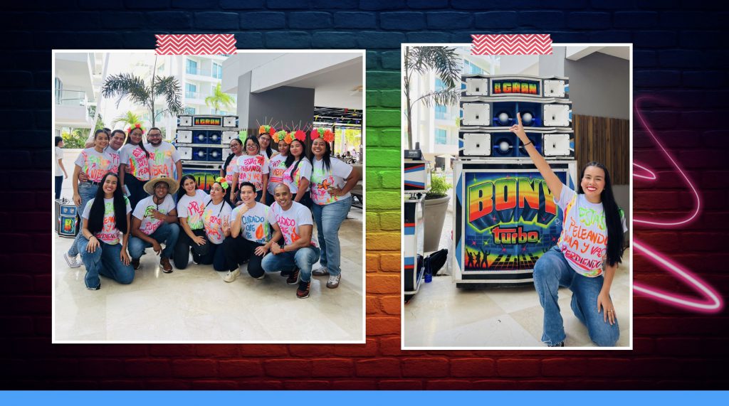 El resultado fue una jornada llena de alegría. Al ingresar al lobby, los visitantes se encontraban con un verdadero Picó, acompañado por luces de neón, música típica del Caribe colombiano y una atmósfera festiva que rompía con la rutina del check-in tradicional. Fue muy gratificante ver cómo los huéspedes reaccionaban con sorpresa y entusiasmo. Muchos se acercaban a preguntar qué era ese “equipo de sonido gigante”, otros reconocían los ritmos y comenzaban a moverse al compás de la champeta, y algunos incluso compartieron la experiencia en sus redes sociales.