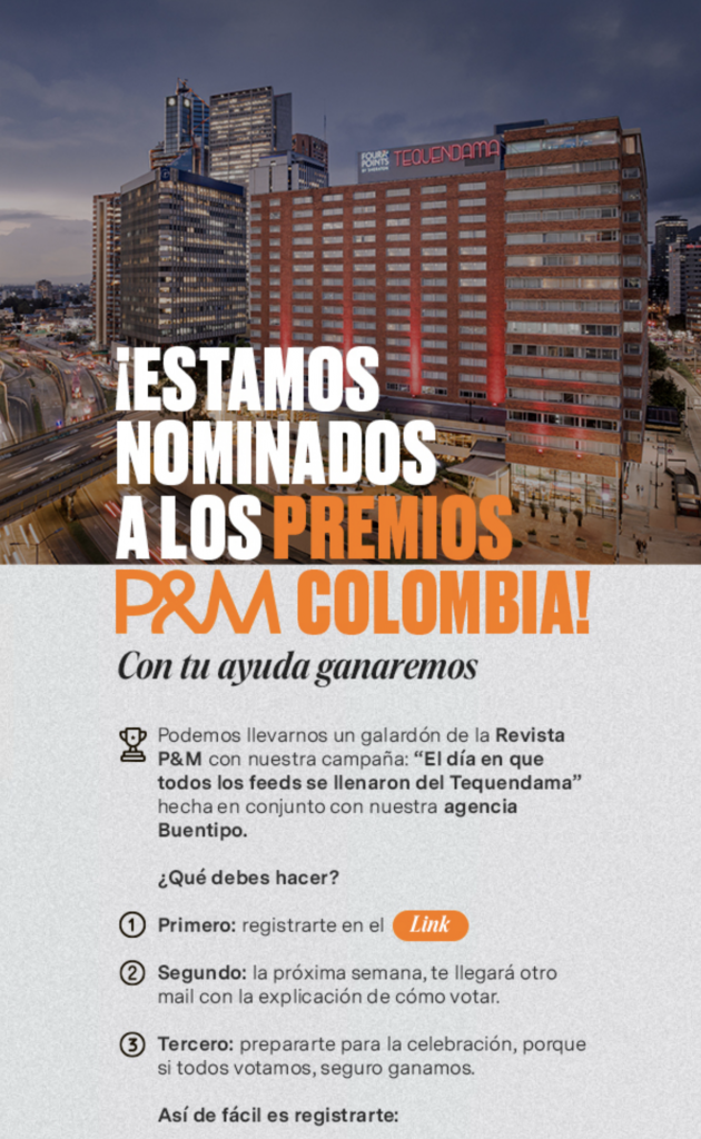 La Revista P&M ha nominado la campaña “El día en que todos los feeds se llenaron del Tequendama”, una creativa y poderosa iniciativa desarrollada por el equipo de GHL Hoteles en conjunto con la agencia Buentipo.